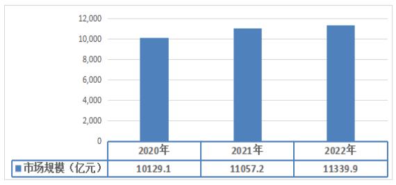 我国皮革行业承压前行,经济运行总体平稳,经济结构持续优化,企业从追求规模效益走向内涵式发展,注重提质增效,行业的竞争力持续提升,2022年我国皮革行业市场规模达到11339.9亿元,同比增长2.56%。皮革行业中企业数量众多,且以中小企业为主,机械化水平较低,研发设计能力较弱,产品同质化严重,行业低端产能过剩。