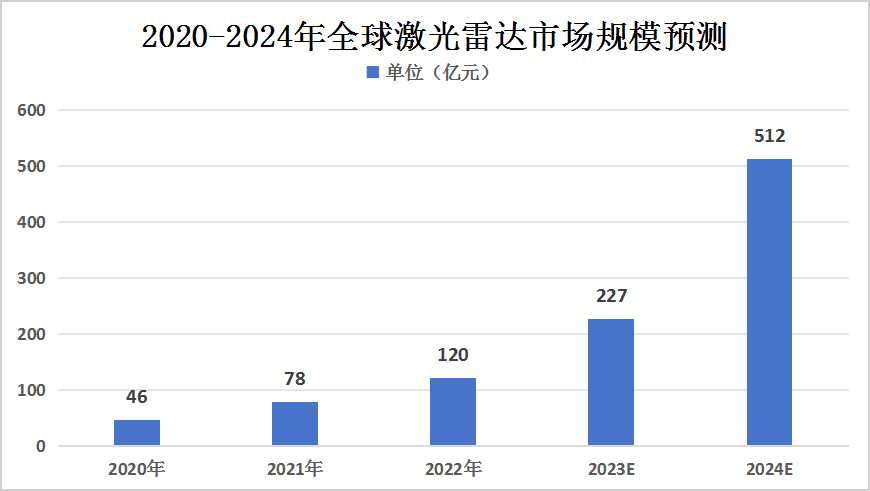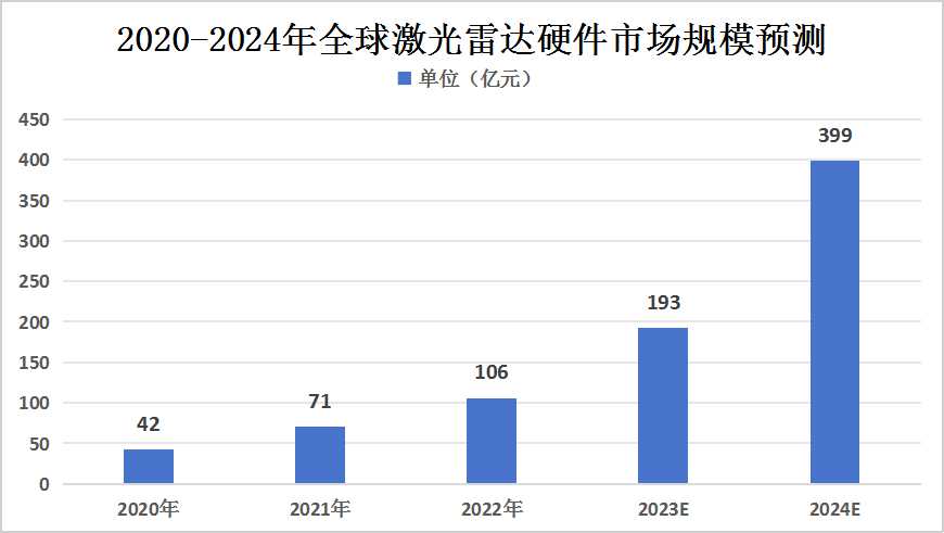 图表:2020-2024年全球激光雷达硬件市场规模预测