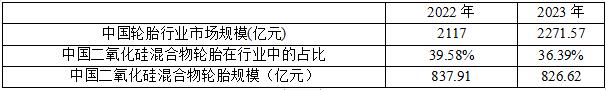 表3:2022年和2023年中国二氧化硅混合物轮胎规模