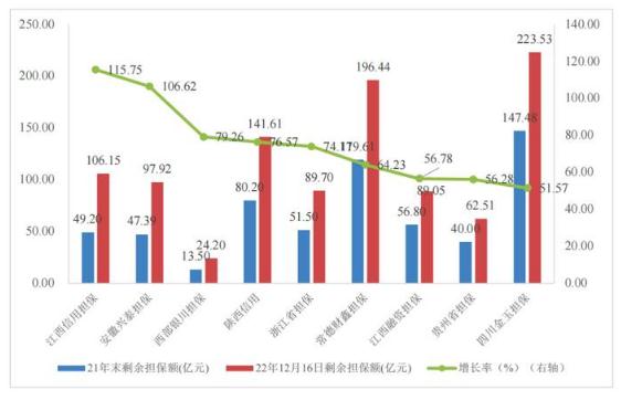 图表:全市场债券剩余担保额较上年末增长超过50%的担保机构概况