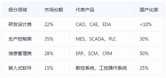 工业软件作为智能制造的核心载体,是连接物理世界与数字世界的桥梁。从产品设计(CAD)、生产控制(MES)到供应链管理(SCM),工业软件贯穿制造业全生命周期。数据显示,2023年全球工业软件市场规模达6,150亿美元,中国以18.3%的增速成为全球最大增量市场。然而,在“卡脖子”技术清单中,EDA、CAE等高端工业软件仍被欧美垄断,国产化率不足15%。
