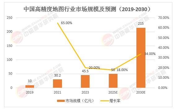 图1:中国高精度地图行业市场规模及预测(2019-2030)