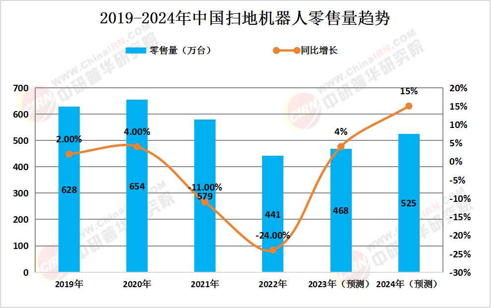 进入2023年,扫地机器人市场开始回暖。零售量达到458万台,同比增长4%。虽然增速相比高速发展期有所放缓,但扭转了2022年的负增长趋势。这一回暖趋势可能与技术进步、功能优化以及市场需求的恢复等因素有关。随着扫地机器人技术的不断升级,如自清洁、自动集尘等功能的加入,使得产品更加符合消费者的需求。同时,部分厂商也通过降价促销等方式,吸引了更多消费者的关注。