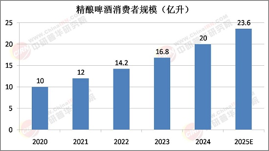精酿啤酒作为工业啤酒的补充,近年来在中国市场逐渐崭露头角,深受年轻消费者和追求品质生活的消费者青睐。根据中研普华研究院预测,到2025年,中国精酿啤酒消费量将达到23.6亿升,渗透率从当前的2.2%提升至6.7%,市场规模可达人民币1040亿元,年复合增长率为26%。