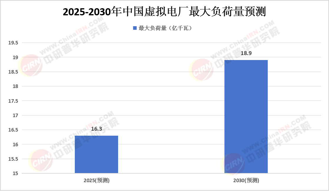 最大负荷虚拟电厂是满足尖峰负荷的重要手段。随着用电负荷特性持续恶化,电网负荷尖峰短而高,单纯依靠增加电源来满足负荷需求将付出极大代价。虚拟电厂作为需求侧响应的延伸版,通过聚合和优化分散的电力资源,实现削峰填谷,有效缓解电网压力。根据中研普华产业研究院发布的《2024-2029年中国虚拟电厂行业深度分析及发展战略预测报告》显示,2025年中国电网最大负荷将达16.3亿千瓦,2030年将达18.9亿千瓦。虚拟电厂将在这一过程中发挥重要作用。