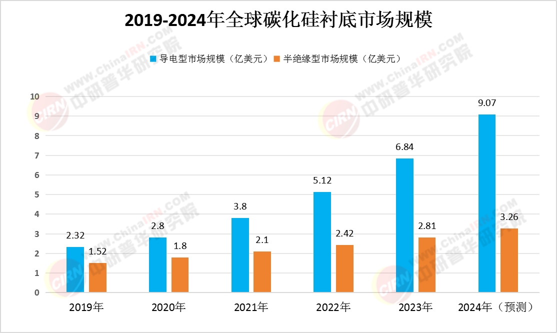 据中研普华产业研究院的《2024-2029年中国新材料产业链供需布局与招商发展策略深度研究报告》分析,全球导电型碳化硅衬底市场规模在近年来持续增长。2022年,全球导电型碳化硅衬底市场规模达到5.12亿美元,同比增长34.74%;而半绝缘型碳化硅衬底市场规模则为2.42亿美元,同比增长15.24%。这一增长主要得益于新能源汽车、智能电网等领域的快速发展,对碳化硅衬底的需求不断增加。预计2023年,全球导电型碳化硅衬底市场规模将达到6.84亿美元,半绝缘型碳化硅衬底市场规模也将增至2.81亿美元。中商产业研究院分析师预测,到2024年,全球导电型碳化硅衬底市场规模将进一步扩大至9.07亿美元,半绝缘型碳化硅衬底市场规模也将达到3.26亿美元。