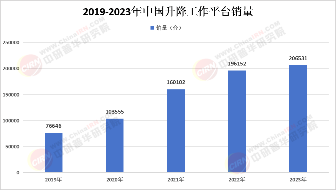 中研普华产业研究院的《2025-2030年工程机械市场发展现状调查及供需格局分析预测报告》数据显示,2023年,升降工作平台作为工程机械行业的重要分支,其市场表现可圈可点。全年共销售各类升降工作平台206,531台,同比增长5.3%,这一增速不仅反映了市场需求的持续增长,也体现了行业内部结构的优化和升级。
