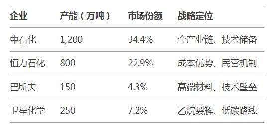 国家队主导:中石化、中石油合计产能占比38%,重点布局炼化一体化基地;