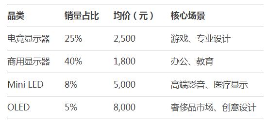 表2:2024年显示器细分市场表现