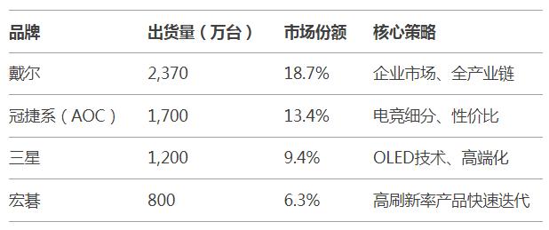 中国品牌崛起:冠捷系(AOC)出货量1700万台,电竞细分市场市占率超30%。