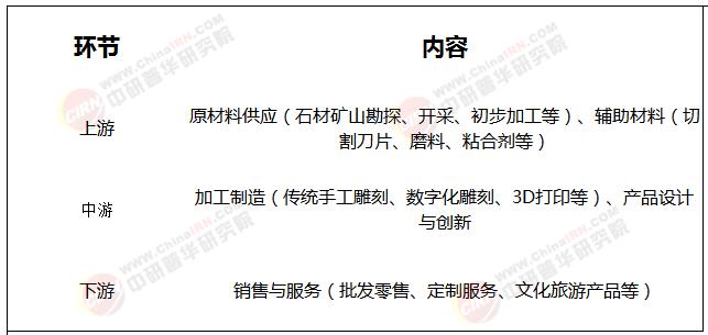 石材浮雕工艺品行业的产业链涉及多个环节,从上游的原材料供应到中游的加工制造,再到下游的销售与服务,每个环节都紧密相连,共同构成了完整的产业链体系。