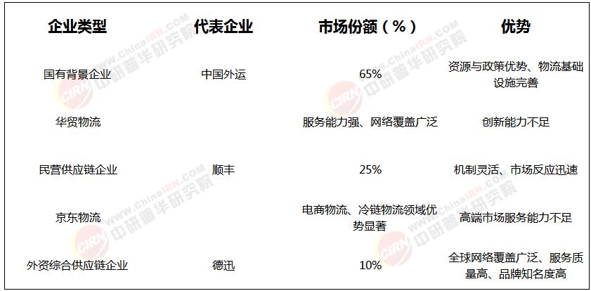 国有背景企业如中国外运、华贸物流等凭借资源与政策优势主导重大基建项目,占据较大市场份额。这些企业在物流基础设施、网络资源和服务能力方面具有显著优势,能够为大型国企和政府机构提供全方位的供应链管理服务。