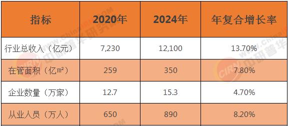 中研普华监测数据显示,2020-2024年物业管理行业核心指标增长显著: