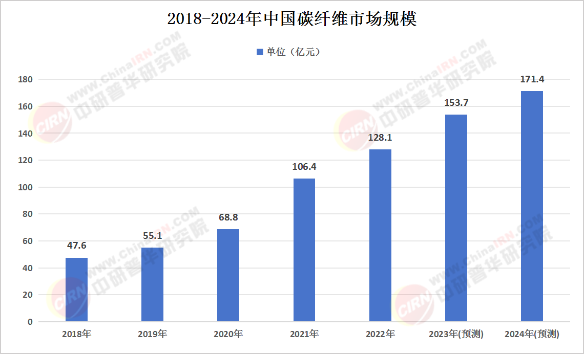 随着全球对轻量化、高性能材料需求的不断增长以及中国经济的持续发展,碳纤维的市场需求将持续增长。特别是在航空航天、新能源、汽车轻量化等领域,碳纤维的应用前景将更加广阔。预计未来几年内,中国碳纤维市场规模将继续保持快速增长态势。