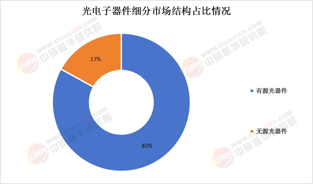 报告显示,光电子器件按功能可分为有源光器件和无源光器件两类。有源光器件占比83%,主要用于光电转换、光信号处理等核心功能,包括激光器、光探测器、光放大器、光开关、光调制器等;无源光器件占比约17%,主要包括光纤连接器、耦合器、波分复用器、光隔离器等,主要用于光路传输和信号分配。有源光器件因其在光通信、光存储等领域的关键作用,占据主导地位;而无源光器件则在光通信网络中发挥基础支撑作用,未来随着光通信技术的演进,其应用潜力将进一步扩大。