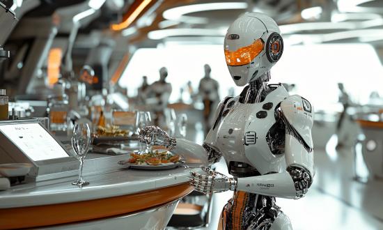 在酒店场景,配送机器人已从简单的"送物"功能升级为"智能货柜+配送机器人"的全流程无人化解决方案;在餐饮场景,机器人不仅承担送餐、回盘任务,更向烹饪环节延伸——御膳智能的全自动烹饪机器人以仿生六轴联动机械臂为核心,对真人厨师烹饪技法的仿生率高达80%以上。