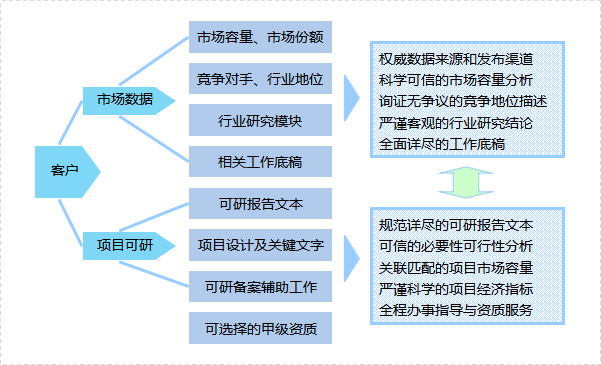 市场研究报告大纲经与企业券商充分沟通后确定;主要解决市场容量历史数据及预测分析、竞争对手研究、企业行业地位与市场份额、行业技术水平、行业特征、行业影响因素等招股书“业务与技术”部分对行业及市场数据的素材需求。