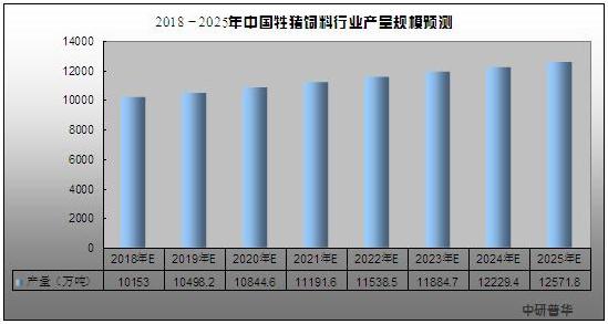 图表:2018-2025年中国牲猪饲料行业产量规模预测