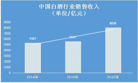 2020年,新冠疫情的爆发及蔓延直接影响了白酒春节旺季的消费,白酒行业销售收入较2019年同期大幅下降,截止至2020年中国规模以上白酒企业累计销售收入达到5836.39亿元,累计增长4.61%.