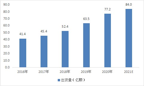 得益于多摄手机的广泛普及和安防监控、智能车载摄像头和机器视觉的快速发展,CMOS图像传感器的整体出货量及销售额随之不断扩大。根据Frost&Sullivan统计,自2016年至2020年,全球CMOS图像传感器出货量从41.4亿颗快速增长至77.2亿颗,期间年复合增长率达到16.9%。预计2021年至2025年,全球CMOS图像传感器的出货量将继续保持8.5%的年复合增长率,2025年预计可达116.4亿颗。