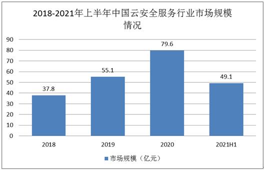 图表:2018-2021年上半年中国云安全服务行业市场规模情况