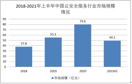 图表:2018-2021年上半年中国云安全服务行业市场规模情况