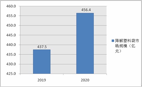 图表:2019-2020年我国可降解塑料袋市场规模(单位:亿元)