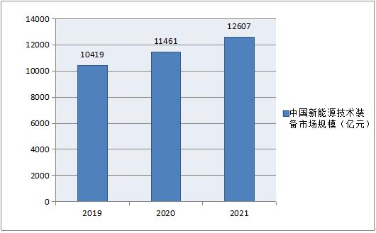 根据相关数据,2019-2021年我国新能源技术装备市场规模如下所示: