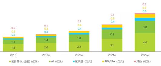 未来至2022年,证券业在各项前沿科技投入的增长基本趋稳,单一技术资金投入增长情况不会出现较大波动。云计算与大数据的基础建设,以及AI、RPA/IPA这类应用场景明显的技术将作为整体的重点投入对象,区块链这类以应用探索为主的技术,主要以头部企业进行资金投入为主。