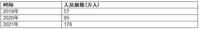图表:2019-2021年中国数字文旅行业人员规模分析