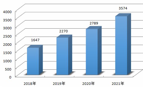 图表:2018-2021年生物医药企业产值(单位:亿元)