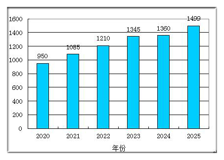 图表:2022-2025年中国医疗耗材行业销售收入预测(单位:亿元)