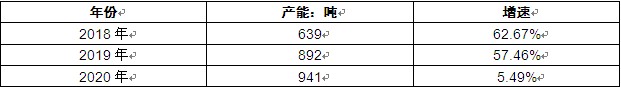 图表:2018-2020年高纯氮化硅行业产能及增速