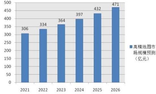 图表:2021-2026年我国高精度地图行业市场规模预测(单位:亿元)