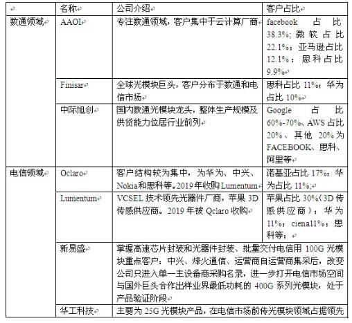 光器件及光模块各细分市场领先企业分析