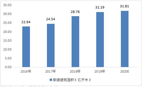 根据测算,2019年我国新建建筑面积31.19亿平方米,考虑到20年后地产新开工面积增速趋缓,保守估计20年新建建筑面积增速为2%,2020年我国新建建筑面积31.81亿平方米.