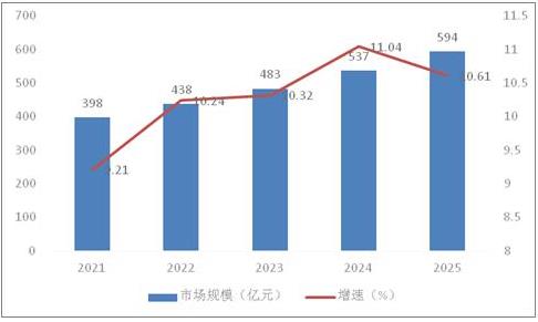 图表:2021-2025年植物提取物行业市场规模及增速预测