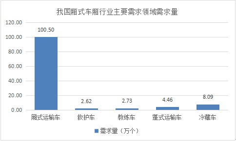 我国厢式车厢主要需求领域在厢式运输车行业、救护车行业、教练车行业、蓬式运输车行业、冷藏车行业。