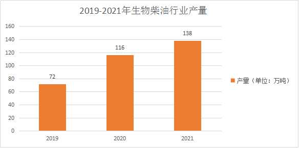 我国生物柴油上市公司在生产技术、产品质量、技术指标等方面已经可以比肩国际先进水平,大部分企业产品都出口至国外市场,并获得了欧盟的认证,2020年我国的生物柴油行业的产量达到116万吨,预计2021年生产柴油行业的产量达到138万吨。