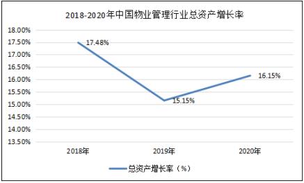 总资产增长率一定程度上反映了行业发展能力,2018年我国物业管理行业总资产增长率17.48%,2020年总资产增长率16.15%。