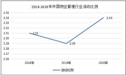 2018年中国物业管理行业流动比例2.31,2020年流动比例2.34。