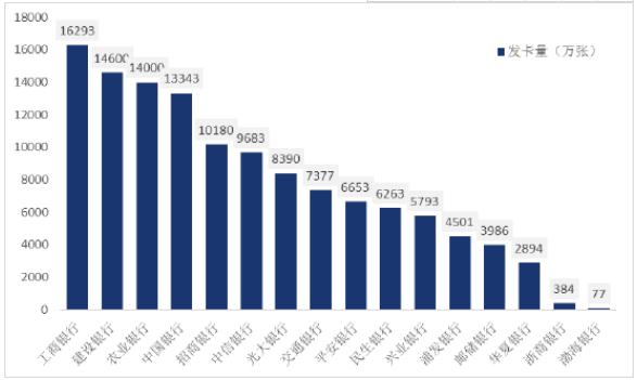 从信用卡发卡量方面看,自2015年至2021年二季度,我国信用卡发卡量呈现上涨趋势,但增速处于上下波动状态。对比全国性银行2021年上半年的发卡量规模可以看出,国有大行依然占据信用卡发行量的霸主地位。工商银行、建设银行、农业银行、中国银行、招商银行的发卡量均已经达到亿级,分别为1.63亿张、1.46亿张、1.4亿张、1.33亿张、1.02亿张。其中,农业银行上半年新增发卡量达千万张位居第一。