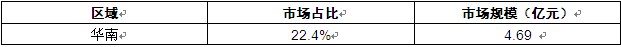 2019年,华南地区智能学习灯市场规模约为4.69亿元,占全国市场比例的22.4%。