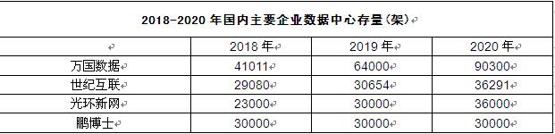 目前,除了通信运营商之外,国内主要的第三方数据中心企业主要有万国数据、世纪互联、宝信软件、光环新网、鹏博士、数据港等几家企业。