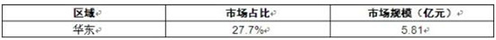 2019年,华东地区智能学习灯市场规模约为5.81亿元,占全国市场比例的27.7%。