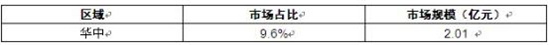 2019年,华中地区智能学习灯市场规模约为2.01亿元,占全国市场比例的9.6%。