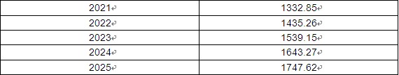 图表:2021-2025年全国沥青行业市场规模预测(单位:亿元)