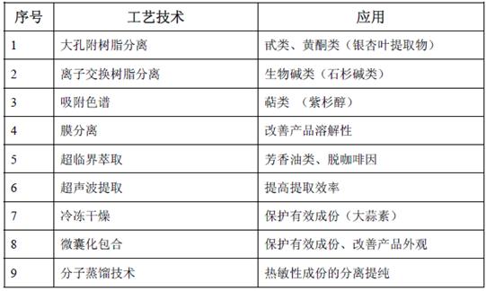 图表:先进技术在中药提取物生产中的应用