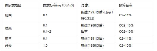 图表:其他国家垃圾焚烧设施二恶英排放标准