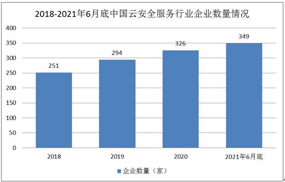 随着云技术的普及应用,云安全服务快速发展,基于自动化、远程化、智能化的威胁监测、攻击防御等新兴服务模式也逐步得到推广和应用,带动了网络安全市场服务化转型。近年来,整个云安全服务市场发展较快,传统的网络安全供应商也逐渐向云安全服务进行靠拢,纷纷开展云安全相关业务,为整个市场增添了新的活力。截至2021年6月底,国内云安全服务行业中企业数量约有349家,服务水平也有一定的提高。
